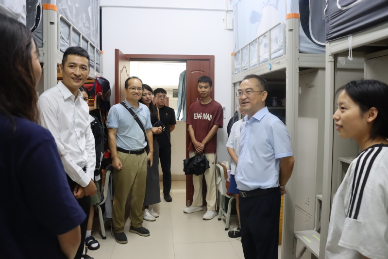 许玫强调,台风防范工作关乎师生的生命财产安全,必须高度重视,紧盯重点部位,狠抓薄弱环节,落实落细防御举措,以“时时放心不下”的责任感妥善做好各项应急准备工作,确保校内安全。在学生宿舍,许玫与学生亲切交流,提醒大家做好防护,减少外出,有困难及时向学院反映。