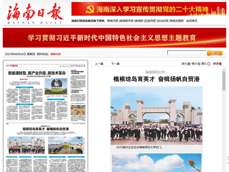 6月26日,《海南日报》刊发我校2025年招生专题文章:《植根琼岛育英才 奋楫扬帆自贸港》