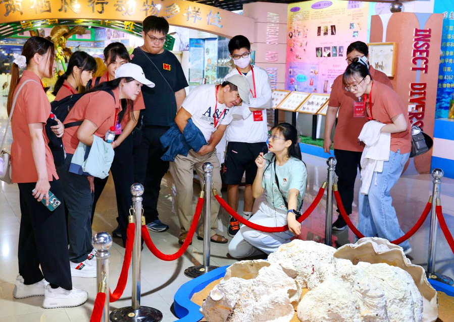 交流团先后参观了我校生物多样性博物馆和海龟救助站。在生物多样性博物馆,台胞青年在专业讲解员的带领下,通过近距离观察珍贵的生物化石标本,感受海南生态资源的神奇魅力。在海龟救助站,通过参与喂食、清理等简单的救助工作,详细了解海龟救助、康复与放归的全过程,在实践中真切体会到海洋生态保护的重要意义。