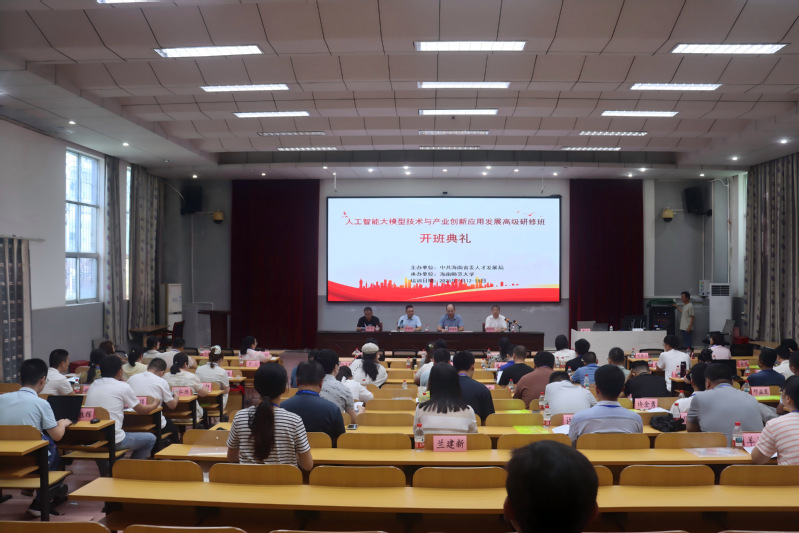 7月12日上午,人工智能大模型技术与产业创新应用发展高级研修班开班典礼在我校龙昆南校区实验楼一楼报告厅举行。中共海南省委人才发展局二级调研员陈振华、我校副校长徐基良出席开班典礼。我校数据科学与智慧教育教育部重点实验室负责人、继续教育学院负责人,以及来自全国人工智能领域的技术负责人、高校及科研院所研究人员60余人参加开班典礼。