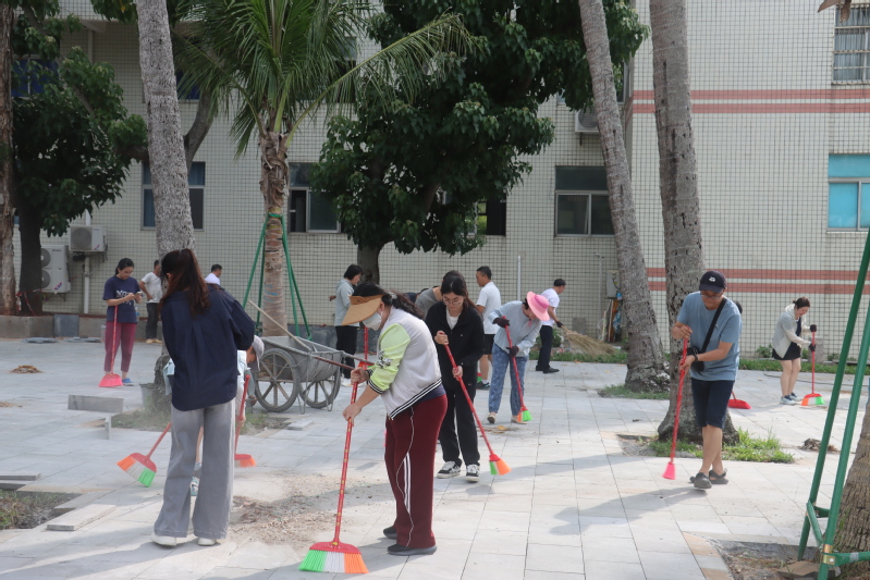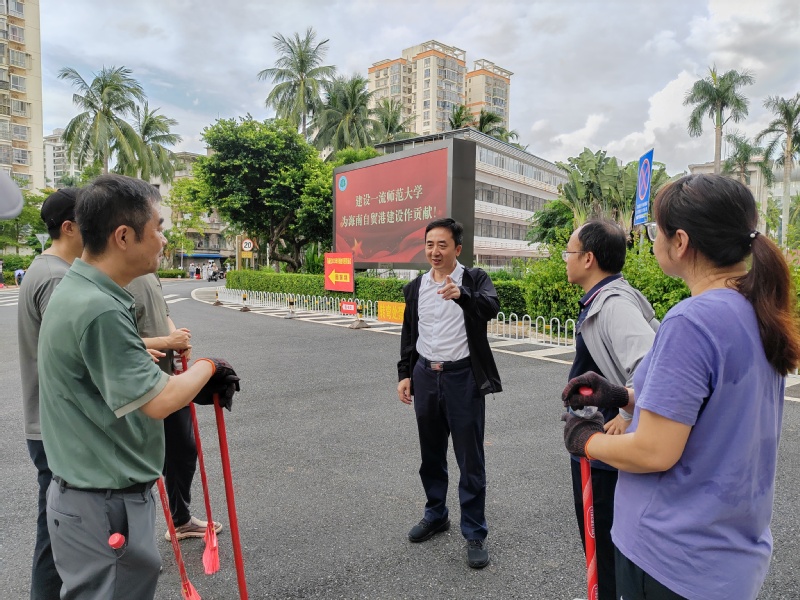 校领导许玫、聂清斌、符刘才、杨兹举、刘汝兵带领全体党员干部和学生志愿者,组成26个小组分工协作,沿校道细致清扫落叶、杂草,清除垃圾、杂物,重点清理卫生死角及“四害”孳生地,切实筑牢环境卫生防线,推动校园环境面貌的持续改善。