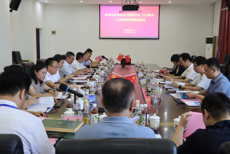 8月11日上午,海南省科学技术厅党组书记、厅长陈杰一行到我校国家大学科技园调研。我校党委副书记、校长聂清斌,党委常委、副校长杨兹举出席,学校相关职能部门及国家大学科技园负责人,园区企业代表等参加座谈。会议由杨兹举主持。