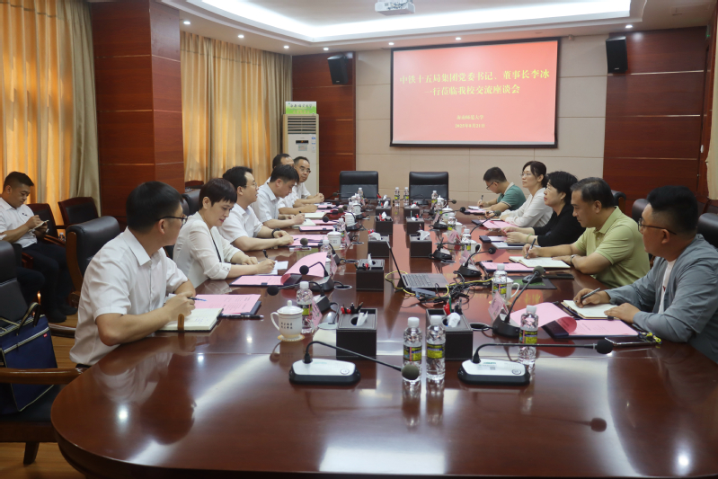 8月21日下午,中铁十五局集团党委书记、董事长李冰一行到我校龙昆南校区交流座谈,座谈会在第一办公楼三楼会议室进行。校党委书记许玫出席并主持会议。