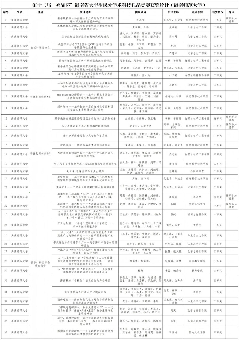 我校41件作品在海南省第十二届“挑战杯”大学生课外学术科技作品竞赛中获奖