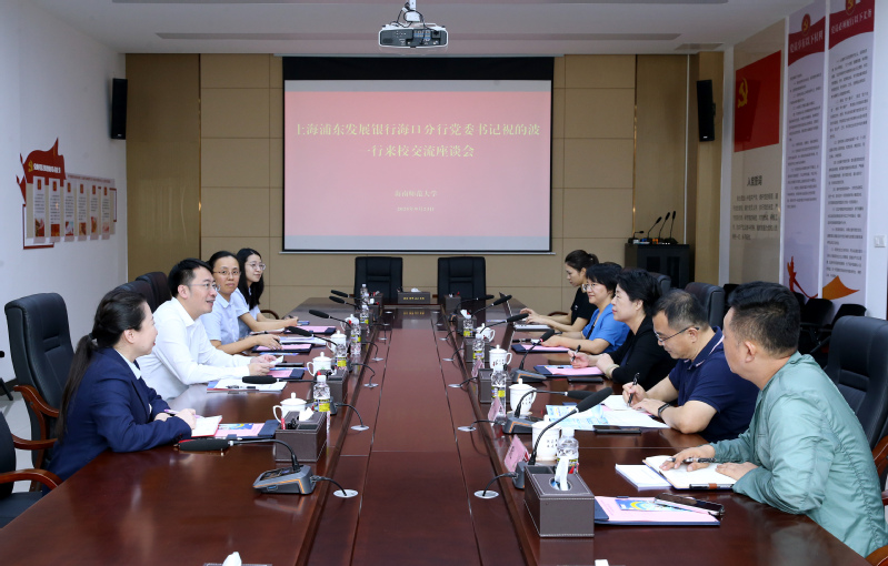 9月23日上午,上海浦东发展银行海口分行党委书记祝的波到访我校,就深化银校合作、促进人才培养进行交流洽谈。座谈会在桂林洋校区第一公共楼一楼党建活动室举行。校党委书记许玫出席并主持会议。