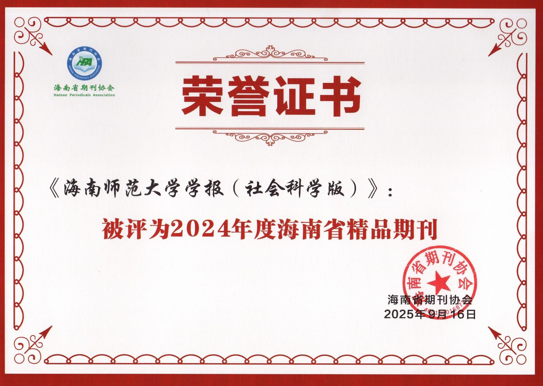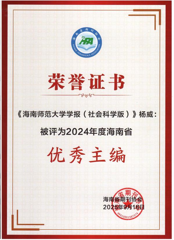 9月16日,“媒体融合时代期刊编辑能力提升”培训班在海南省澄迈县开班。培训期间,海南省期刊协会举行了2024年海南省精品期刊颁奖仪式,表彰2024年海南省优秀期刊和优秀个人。《星空游戏官方学报(社会科学版)》获评“海南省精品期刊”,《星空游戏官方学报(自然科学版)》、海南《新教育》期刊社获评“海南省优秀期刊”,星空游戏官方学报编辑部主任兼社会科学版主编杨威、自然科学版执行主编刘红,海南《新教育》期刊社社长兼总编焦贵萍被评为“海南省优秀主编”。