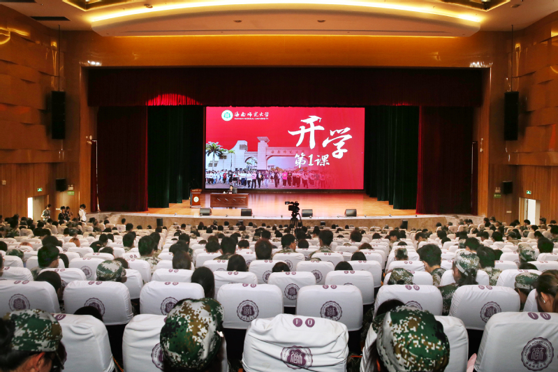 9月26日下午,校党委书记许玫在桂林洋校区大学生活动中心演艺厅以“在历史的回响中汲取伟力,于时代的浪潮里奋楫前行”为题,为5445名2025级本科新生上开学第一课。此次活动采取线上线下结合的方式,在龙昆南、桂林洋校区分会场同步直播,由校党委副书记符刘才主持。