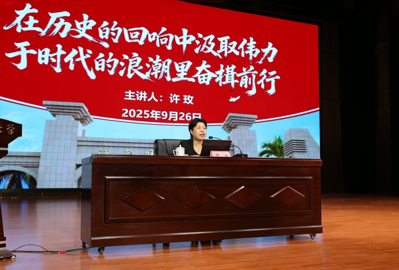 许玫以“在历史的回响中汲取伟力,于时代的浪潮里奋楫前行”为题进行授课