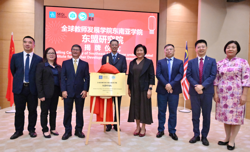 9月24日,星空游戏官方全球教师发展学院东南亚学院东盟研究院签约揭牌仪式在马来西亚世纪大学举行。马来西亚世纪大学校长郑玉美院士、我校副校长杨兹举出席仪式并致辞。