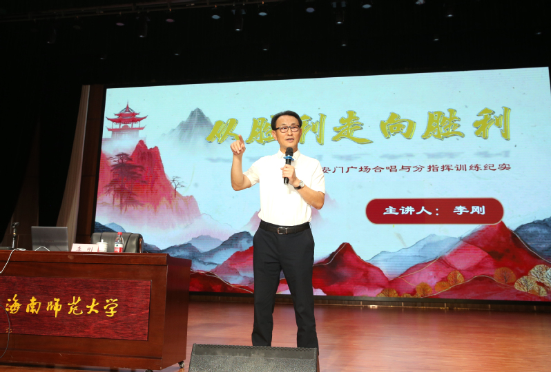 10月14日下午,我校桂林洋校区大学生活动中心座无虚席、气氛热烈,第二期榕树讲坛在此开讲。著名指挥教育家、首都师范大学音乐学院李刚教授受邀来到我校,以《从胜利走向胜利——纪念中国人民抗日战争暨世界反法西斯战争胜利80周年天安门广场阅兵合唱与分指挥训练纪实》为题作专题讲座。
