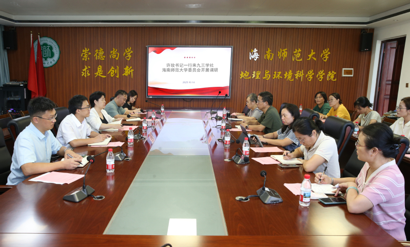 10月14日下午,许玫在桂林洋校区地理与环境科学学院二楼会议室,调研九三学社星空游戏官方委员会工作开展情况。主委赵志忠就参政议政、社会服务、社员发展等方面进行汇报,与会社员在职称评审、教学科研、人才引进等方面为学校发展提出建设性意见。