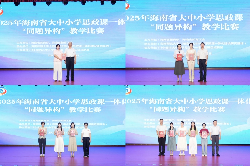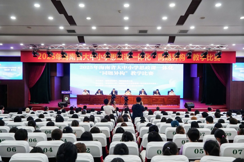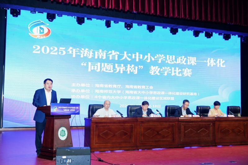 10月17日至18日,2025年海南省大中小学思政课一体化“同题异构”教学比赛在我校举行。全省4个大中小学思政课一体化区域联盟选派12支代表团队、48名思政课专职教师参赛。