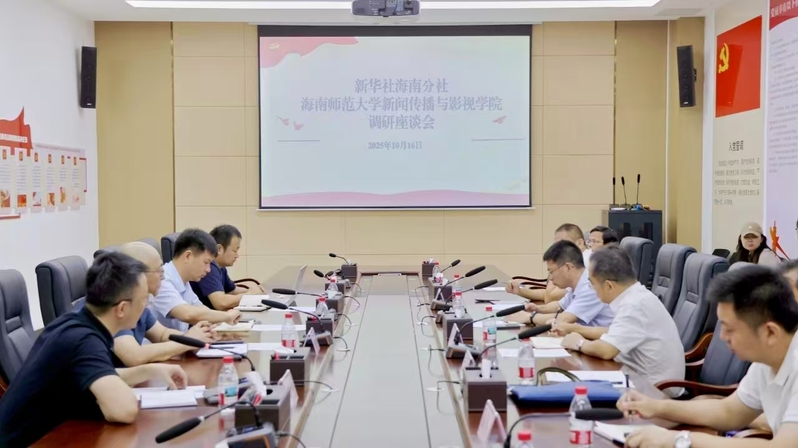 新华社海南分社职能部门,我校新闻传播与影视学院负责人、教师代表参加会议。