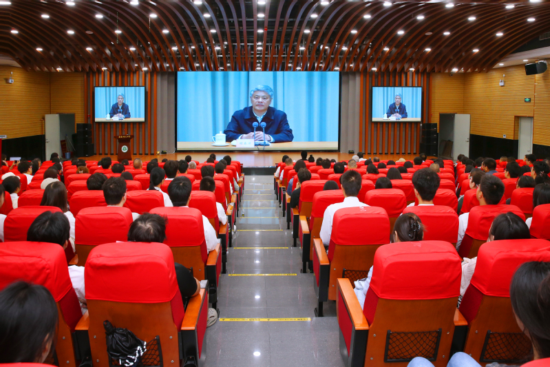 10月21日下午,我校组织全体师生党员参加2025年党员教育培训第二次集中大课,共同听取由中央党校(国家行政学院)分管日常工作的副校长(副院长)谢春涛主讲的“中国共产党与中华民族伟大复兴”专题报告。校党委书记许玫出席培训并作动员讲话,校党委副书记符刘才主持培训。