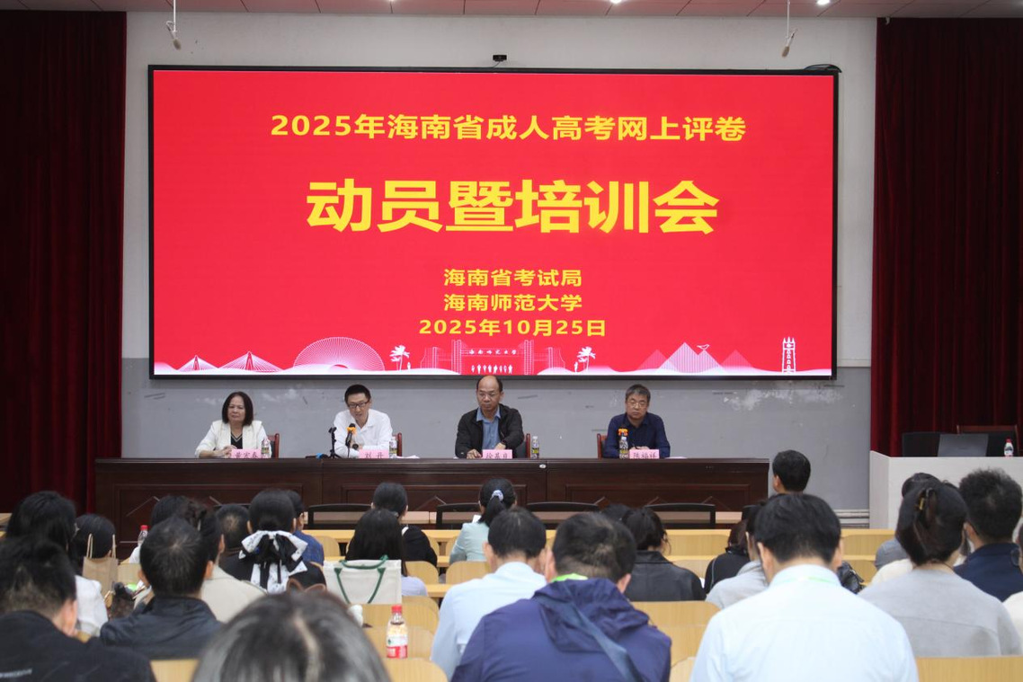 10月25日上午,2025年海南省成人高考评卷动员暨培训会在我校龙昆南校区召开。海南省考试局副局长刘丹、我校副校长徐基良出席会议。