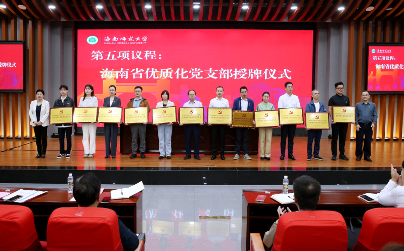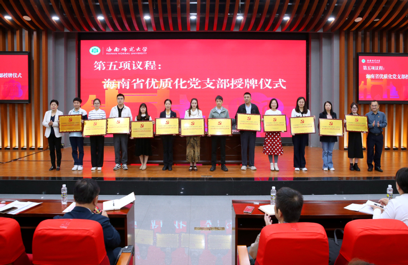 会议“第一议题”传达学习了《习近平谈治国理政》第五卷《健全全面从严治党体系,推动新时代党的建设新的伟大工程向纵深发展》篇章和相关文件精神。会上通报了校内巡察中发现的基层党建工作共性问题,并宣读了学校入选海南省教育系统优质化党支部和全省第四批新时代高校党建“双创”及“双带头人”教师党支部书记工作室培育建设名单。许玫、符刘才共同为24个入选海南省优质化党支部的单位授牌。