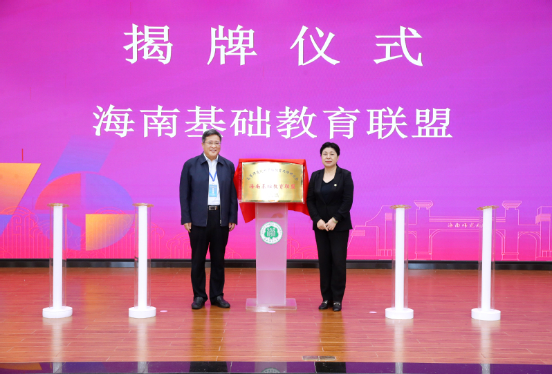 王守军与许玫共同为高师研究会海南基础教育联盟揭牌