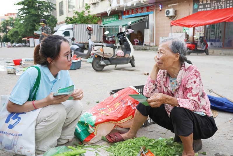 王晓琳同学在大成镇农贸市场面向商贩开展普惠金融科普活动