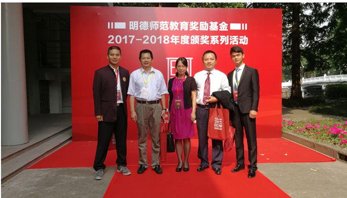 2017-2018学年度明德师范教育奖励基金颁奖仪式于6月11日在华中师范大学举行。我校党委副书记刁晓平带领明德奖教师获得者参加此次颁奖。其中我院教师庄长宽教授获得“明德教师奖”,并代表我校获奖教师领奖并发言。