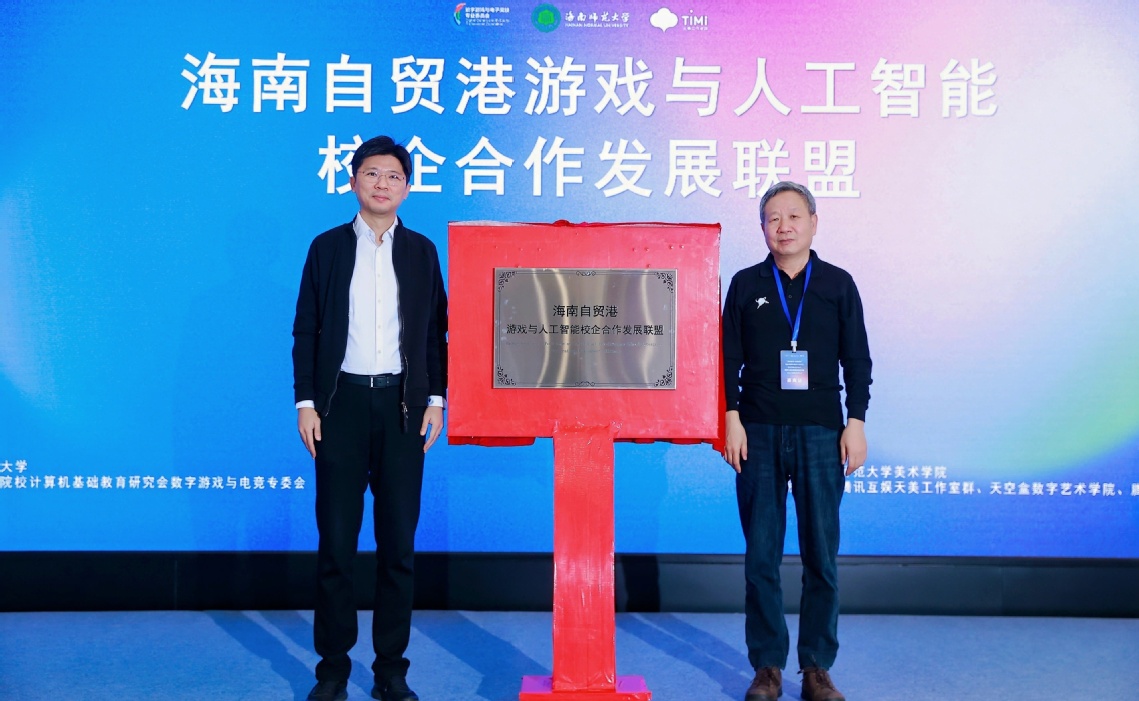 张引和黄心渊共同为海南自贸港游戏与人工智能校企合作发展联盟揭牌